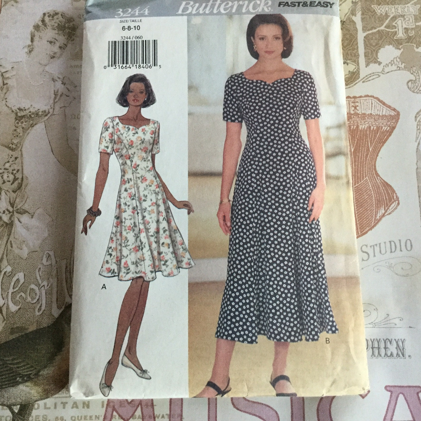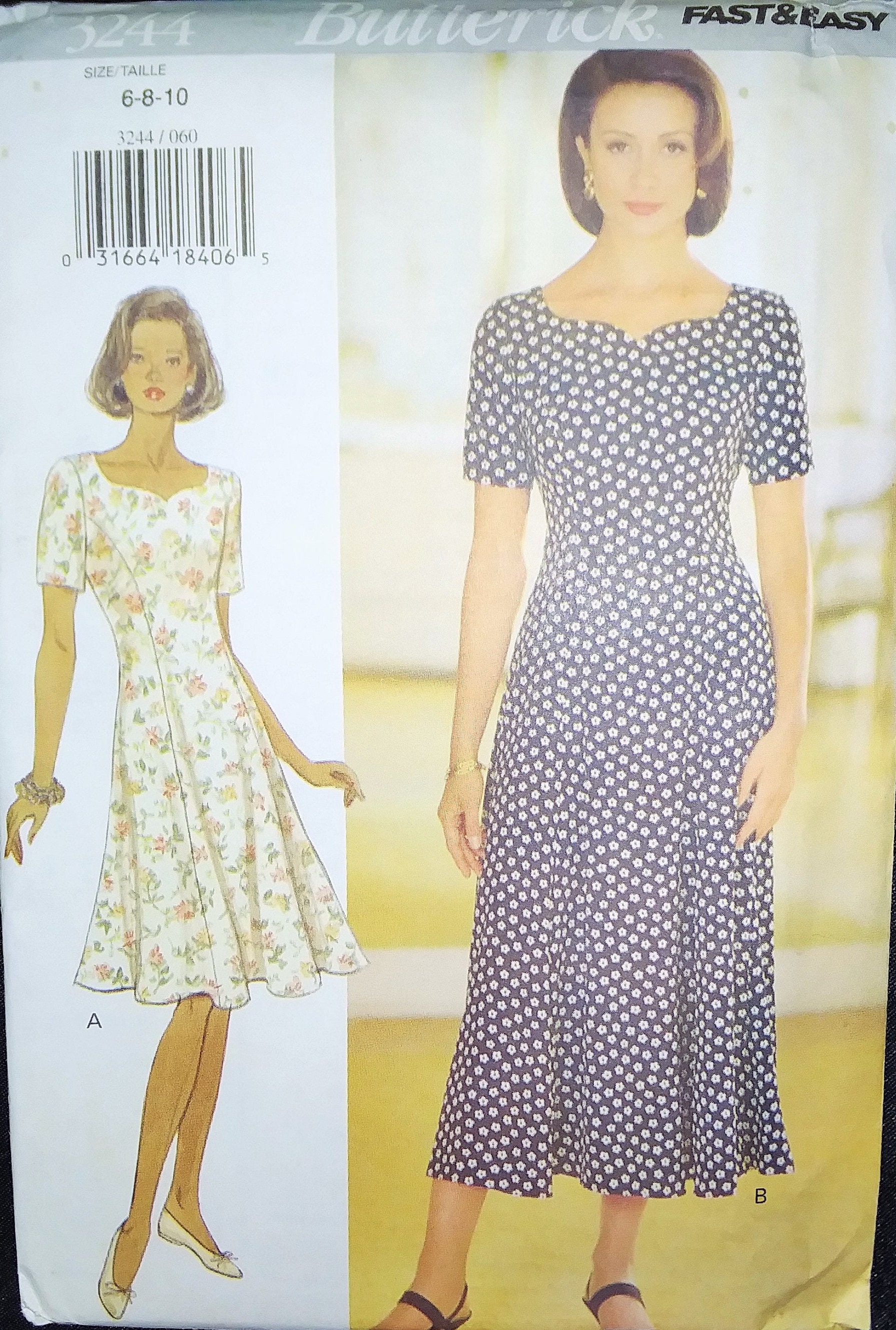 Butterick 3244 Fit And Flare Princess Seam Dress Back Zip Etsy